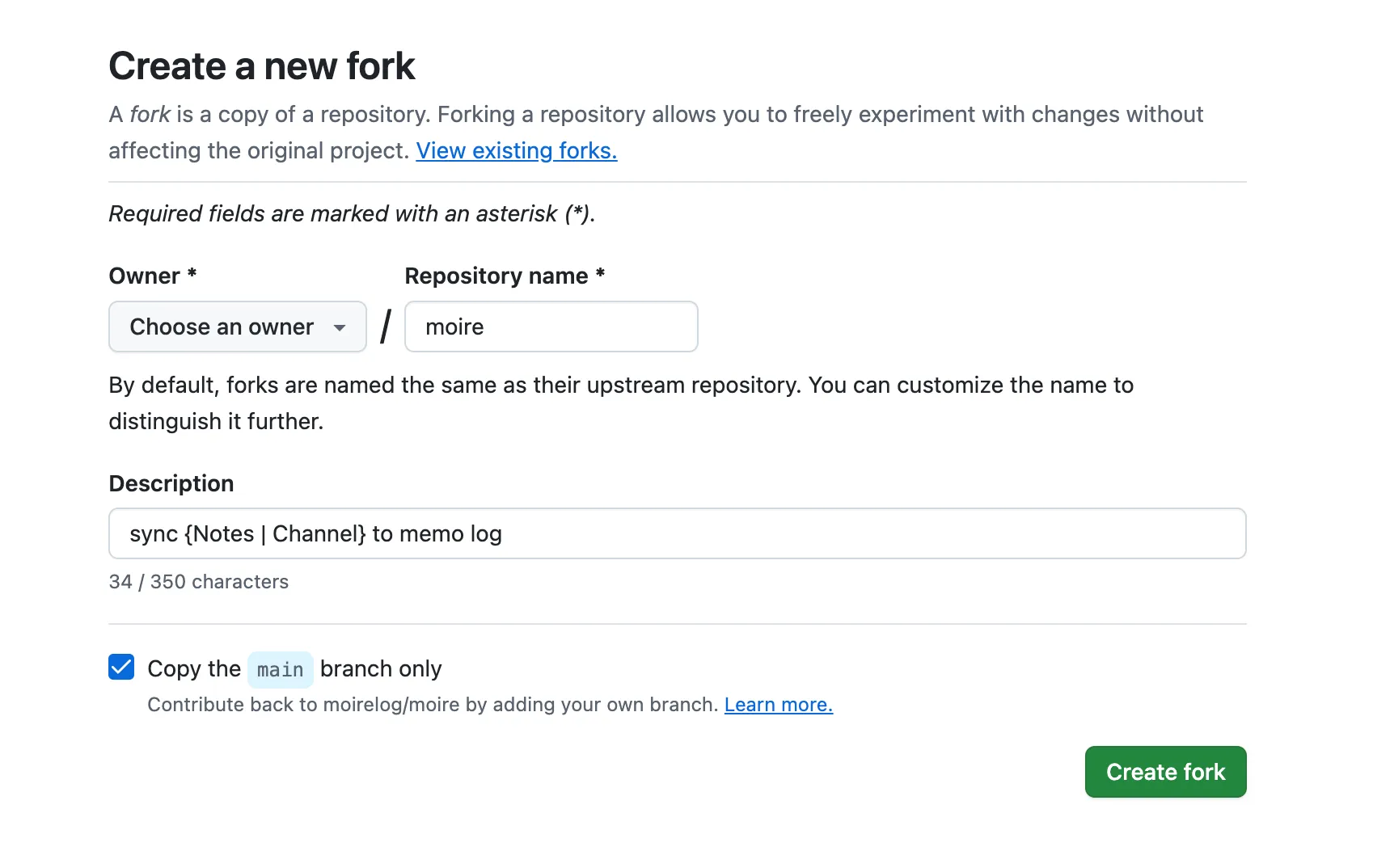 Click Create fork