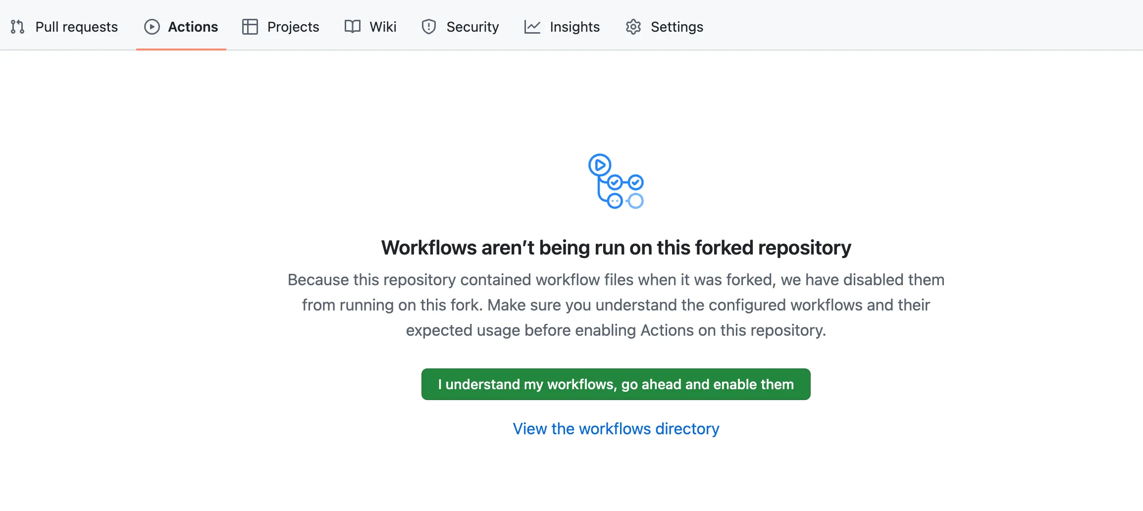 Click the green button: I understand my workflows, go ahead and enable them